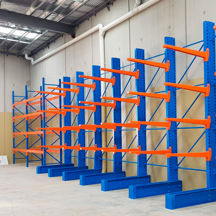 El sistema de Racks Cantilever está diseñado para el almacenamiento de cargas largas, pesadas o voluminosas, como tubos, barras, tableros de madera, láminas metálicas y perfiles estructurales. A diferencia de otros sistemas, utiliza brazos horizontales en voladizo que se fijan a columnas verticales, eliminando la necesidad de entrepaños frontales y permitiendo un acceso libre y rápido a la mercancía.